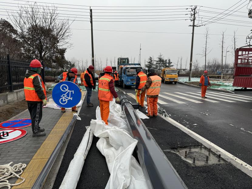 立足優(yōu)質(zhì)服務(wù),確保維護(hù)管養(yǎng)及時高效。盛達(dá)市政分公司根據(jù)公司上級交辦的重點(diǎn)工作,以及一季度觀摩會活動線路保障等工作,積極完善轄區(qū)主次干道、公園、廣場的市政設(shè)施,認(rèn)真履職盡責(zé),保障市政設(shè)施完善,做好下水管網(wǎng)運(yùn)轉(zhuǎn)通暢,巡查人員冒雨堅持道路巡查,對轄區(qū)下水管網(wǎng)進(jìn)行摸底排查,及時清理疏通堵點(diǎn),對積水嚴(yán)重路段設(shè)立警示標(biāo)志,并利用抽水泵等重型設(shè)備疏導(dǎo)積水,確保轄區(qū)不出現(xiàn)大面積積水,保障了轄區(qū)人民群眾的出行安全,一季度順利完成轄區(qū)井篦、井蓋更換安裝合計約200套;另外,友誼路交黃海大道、興業(yè)路交黃海大道、平山路交黃海大道雨水管網(wǎng)改造工程正在有序開展中。