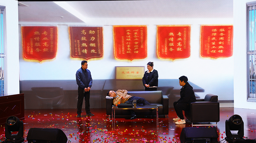 演出在舞蹈《祖國(guó)你好》中拉開序幕,隨后,一個(gè)個(gè)歡快、喜慶、祥和的文藝作品相繼上演。這其中,既有充分展現(xiàn)臺(tái)北發(fā)展力量的情景劇《我們是臺(tái)北力量》《南泥灣暢想》,也有大氣磅礴的男女對(duì)唱《不忘初心》和小合唱《眾人劃槳開大船》,有草原氣息的笛子獨(dú)奏《牧民新歌》,諷刺當(dāng)下“躺平式”干部的廉潔作風(fēng)小品《坑》,展現(xiàn)公司活力的男團(tuán)《舞蹈:串燒》《山丹丹花開紅艷艷》,奇特、神秘的魔術(shù)表演,一腔情懷的京劇《沙家浜-唱段軍民魚水情》……最后,在機(jī)關(guān)全體人員帶來(lái)舞蹈《相親相愛的一家人》中落幕,高潮迭起、精彩不斷,得到廣泛好評(píng)。