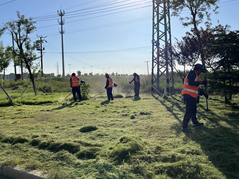 斗酷暑 陽光很烈,他們很美。滾滾熱浪,高溫“烤”驗。“炎”值爆表,室外溫度38℃,地表溫度飆升到50℃,城市像一個巨大的“蒸籠”,空調(diào)房里的人們望門止步。但是,有一群與太陽肩并肩不服“暑”的鐵“汗”子,他們用黝黑皮膚擦亮奮斗的底色。你可以在小區(qū)里看到他們頭頂驕陽找路徑、穿網(wǎng)線、做網(wǎng)絡(luò);可以在東方大道上看到他們冒著紫外線的灼烤,忙著栽種草苗、除草澆水;可以在大浦路上看到他們腳踩滾燙瀝青,忙著轉(zhuǎn)移交通桿;可以在花果山大道上看到他們汗流浹背,背著割灌機忙著打草。一件件浸透汗?jié)n的工裝,一句句樸實無華的話語,一份份汗水淋漓的擔(dān)當(dāng)……翔立每位員工都在發(fā)揚“特別能吃苦、特別能戰(zhàn)斗、特別能奉獻”的鐵軍精神,攥緊拳頭,埋頭苦干。