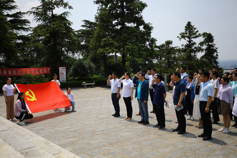 全體黨員在紀(jì)念碑前鄭重鞠躬,并重溫了入黨誓詞。