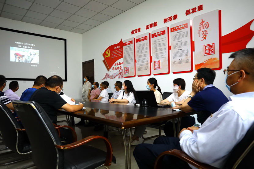 與會(huì)人員邊看邊聽(tīng)講解海州灣黨支部規(guī)范化展板和本月書(shū)記項(xiàng)目的落實(shí)情況,以及在海州灣黨建活動(dòng)室觀摩學(xué)習(xí)了上半年黨建基礎(chǔ)臺(tái)賬和活動(dòng)影像。各黨支部就基層黨組織規(guī)范化及書(shū)記項(xiàng)目“點(diǎn)將臺(tái)”的落實(shí)情況作了匯報(bào)交流。黨委副書(shū)記楊善革針對(duì)各支部的黨建工作情況作了詳細(xì)的點(diǎn)評(píng),指出各支部黨建工作中存在的不足,并要求各支部立即整改。
