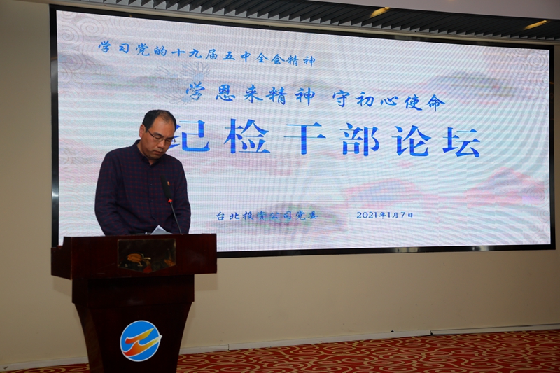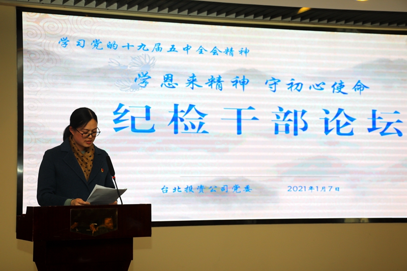 “感受偉人風(fēng)范,踐行初心使命……”從臺北投資公司十樓會議室里傳來鏗鏘有力的演講聲。為深入推進(jìn)“學(xué)恩來精神、守初心使命”專題教育活動,鍛造忠誠干凈擔(dān)當(dāng)?shù)?/span>紀(jì)檢干部隊(duì)伍,1月7日下午,公司舉辦紀(jì)檢干部專題大講堂。公司領(lǐng)導(dǎo)班子成員,各單位、部門中層副職以上管理人員參加了活動。