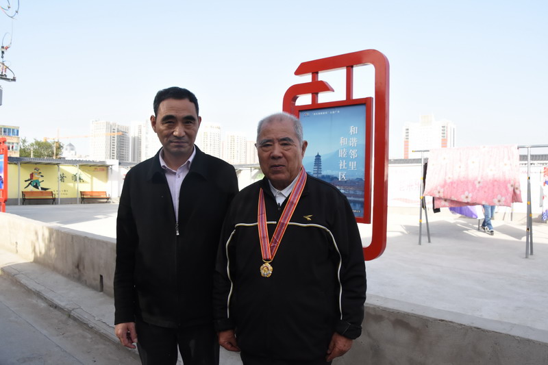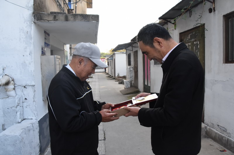 解韻波同志今年83歲,1956年1月參軍,那年19歲,同年6月經(jīng)過短期高強度培訓(xùn),作為無線電通訊兵出國抗美援朝。1959年西藏達賴集團發(fā)動叛亂,剛回國不久的解韻波作為無線電技術(shù)兵種隨即跟隨大部隊入藏平叛。至今他仍保留著抗美援朝軍功章,入藏平叛軍功章、紀(jì)念章等。1962年退伍分配至臺北鹽場工作,1997年退休。今天慰問的時候,在鄰居們的簇擁和艷羨之中,還沒進家門,鄰居們就迫不及待地要求打開“紀(jì)念章”一睹風(fēng)采。紀(jì)念獎?wù)聮煸诶蠎?zhàn)士胸前,一眾鄰里夸贊不斷:這份榮譽沉甸甸的。這份榮譽是拿命換來的。這是不得了的榮譽啊。這樣的老兵是我們的寶貝哦,我們要尊敬啊。……就在小區(qū)活動廣場上,老戰(zhàn)士與大家暢談起保家衛(wèi)國光榮的戰(zhàn)斗經(jīng)歷,烽煙往事歷歷在目。退伍后,不褪軍人本色,幾十年如一日立足家鄉(xiāng)建設(shè),為臺北鹽場奉獻青春,為國家建設(shè)貢獻力量。大家對解韻波老戰(zhàn)士的革命戰(zhàn)斗和建設(shè)祖國的歷程表示由衷贊嘆和敬佩。