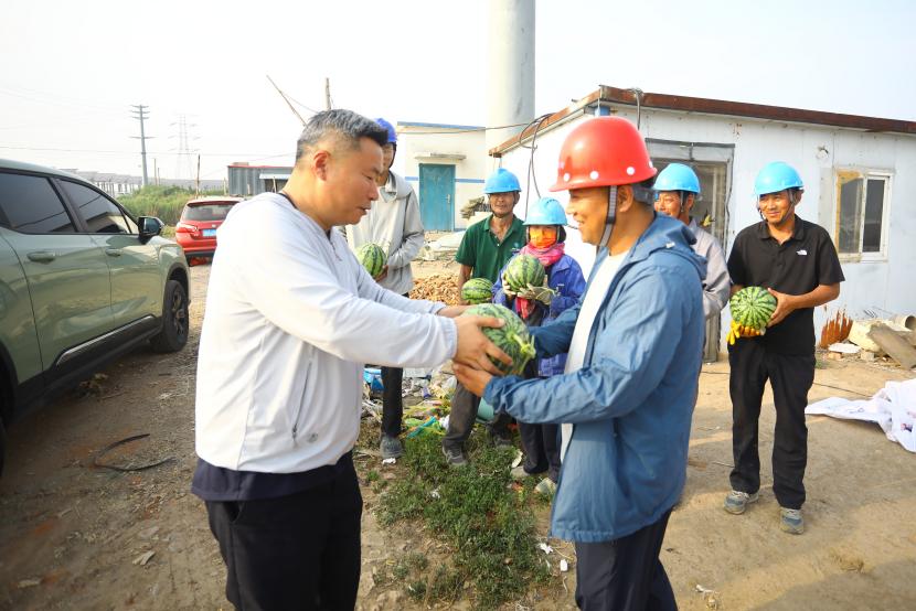 “施工現(xiàn)場送西瓜啦!”隨著夏日高溫持續(xù)攀升,為全力做好高溫天氣下職工防暑降溫工作,切實保障職工安全健康權(quán)益,自5月20日起,臺北投資公司工會精心策劃并開展“夏送清涼”主題活動。公司工會深入工程施工現(xiàn)場,將甘甜多汁的西瓜送到堅守在高溫崗位的職工手中,為他們送去陣陣清涼,這一暖心舉措收獲職工們紛紛點贊。