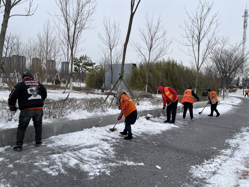 ? ? 此次鏟冰除雪行動仍在進(jìn)行,鏟的是責(zé)任,暖的是人心。經(jīng)過志愿者的共同努力,園內(nèi)的積雪情況得到有效緩解。一條條整潔的道路給群眾送去的不僅是方便和安全,更是一份溫暖和正能量,志愿精神讓這份溫暖在大雪中不斷蔓延。