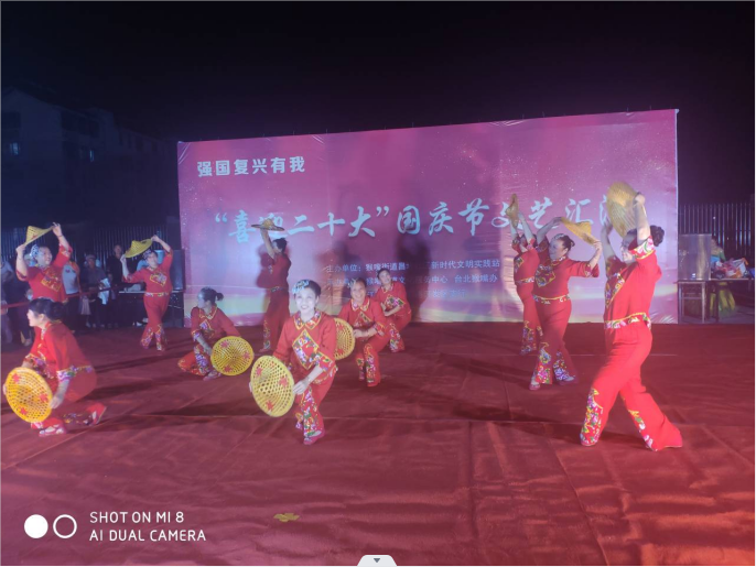 ? ?為迎接黨的二十大勝利召開(kāi),以良好的精神風(fēng)貌向祖國(guó)73周年獻(xiàn)禮,豐富臺(tái)北鹽場(chǎng)小區(qū)黨員群眾精神文化生活,營(yíng)造歡樂(lè)的節(jié)日氛圍。9月30日晚,由猴嘴街道昌圩社區(qū)新時(shí)代文明實(shí)踐站主辦,臺(tái)北猴嘴辦事處承辦的“喜迎二十大”為主題的國(guó)慶節(jié)文藝匯演在猴嘴昌圩小區(qū)精彩開(kāi)演,吸引了眾多鹽場(chǎng)黨員群眾參與及觀(guān)看。?