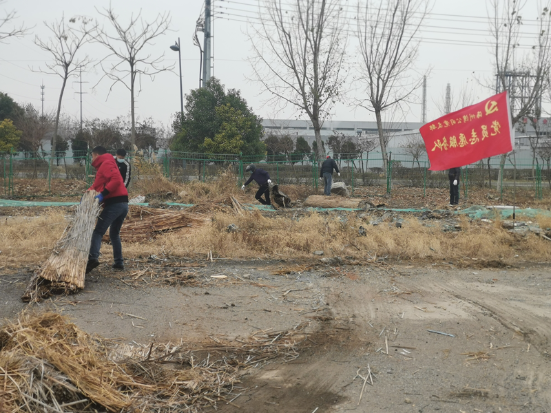 活動現(xiàn)場,鮮紅的黨旗迎風(fēng)飄揚(yáng),支部黨員、職工手拿鐵锨、鐮刀、掃帚等工具,對場地上的垃圾、雜物進(jìn)行了清理。特別是經(jīng)過風(fēng)吹日曬的生活垃圾,散發(fā)出陣陣酸臭味。突擊隊(duì)員們分工協(xié)作,不怕臟,不怕累,干勁十足,經(jīng)過三個多小時(shí)的辛勤勞動,場地環(huán)境有了很大的改善。