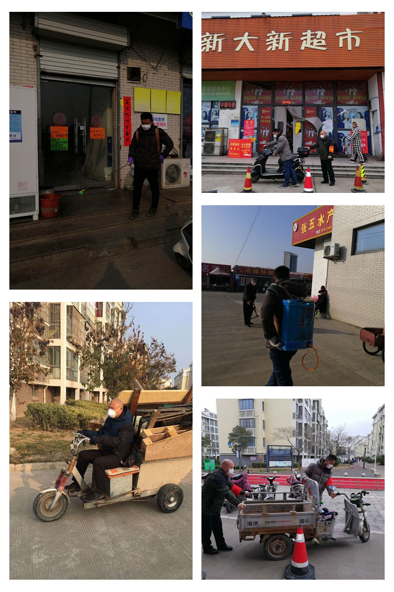 年初三開始,和值班領(lǐng)導(dǎo)站在鄰里中心入口處時(shí)刻提醒業(yè)主外出戴口罩,做了很多“不近人情”的事,常常不被理解,甚至于還要受人責(zé)罵。對(duì)于這些他從不埋怨,本著初心只為從源頭上遏制疫情把好關(guān)。小區(qū)內(nèi)全面實(shí)施嚴(yán)格消毒管理措施,韓加柱、盧廷高二人主動(dòng)承擔(dān)了鄰里中心的消毒水噴灑工作。樓道里、垃圾桶旁,不放過(guò)任何死角。沒有N95口罩,來(lái)不及經(jīng)專業(yè)的知識(shí)培訓(xùn)。近日來(lái)共計(jì)噴藥消毒近萬(wàn)多平方,節(jié)日期間清掃垃圾,消毒垃圾桶他們用默默的行動(dòng)為廣大業(yè)主筑起一道堅(jiān)固的生命防線。