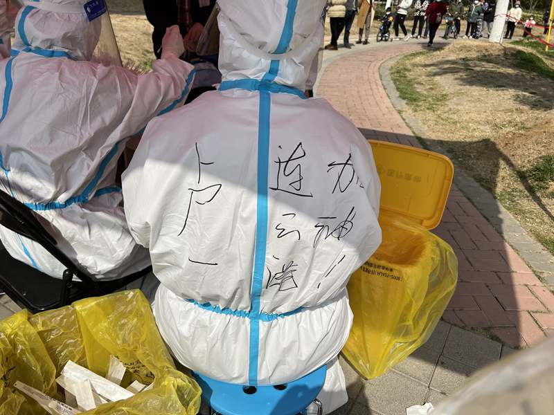 9:00 ?所有人員就位,我也開始了我的“大白”體驗(yàn)課,工作就是核對(duì)身份證信息與二維碼一致,進(jìn)行拍照采樣。身穿防護(hù)服,站到崗位上,面前就是群眾,心中滿腔責(zé)任感,使命感。