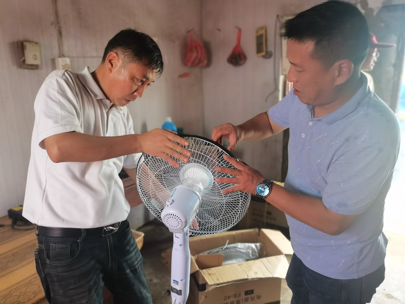 近期,海州灣工會協同公司一起深入班組開展“安全生產百日攻堅大行動”,認真排查生產作業(yè)場所及職工值班室安全隱患。在排查過程中,發(fā)現值班室的吊扇十分陳舊,運轉時有晃動的現象,存在風葉脫落的危險,且風力微弱,達不到良好的降溫效果。工會現場拿出解決方案,決定采購一批落地扇送入班組,為職工送去一絲清涼。