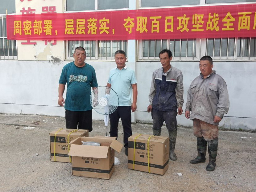 15臺風扇陸續(xù)送至“先鋒、昌圩、大浦”三個礦鹽班組,公司領導一邊親手為職工進行安裝,一邊與他們親切交談,詳細了解職工需求,充分肯定他們不畏艱辛、吃苦耐勞的奉獻精神,叮囑他們做好防暑措施,保障身心健康,同時保障生產作業(yè)安全平穩(wěn)。