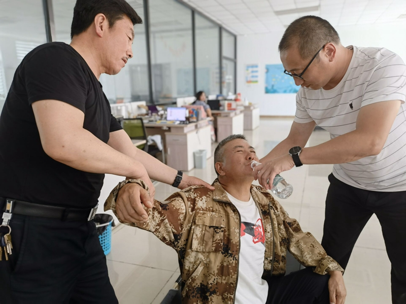 隨后演練開始,大家迅速轉移中暑職工轉移至通風、陰涼、干爽的地方。