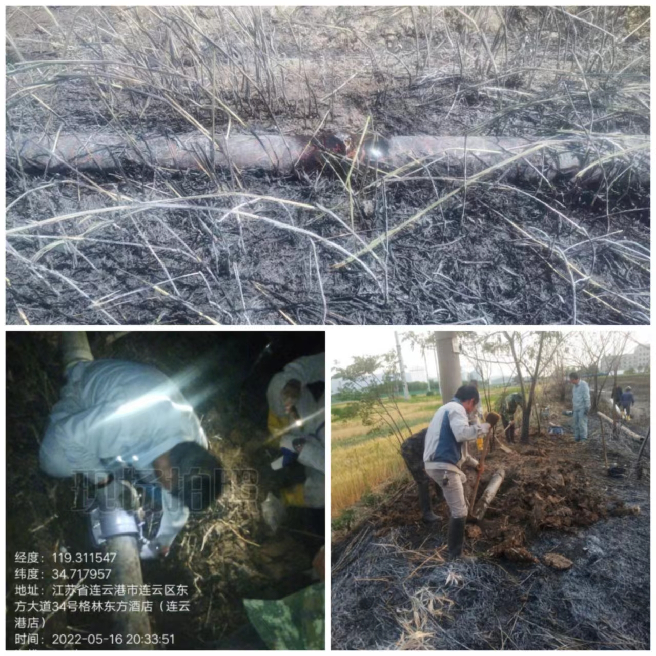 5月16日中午12點(diǎn)半左右,東方大道與新光路交叉處蘆葦蕩突發(fā)大火,海州灣公司近300米礦鹵管道正埋于此處。大火發(fā)生后,管道突發(fā)性爆裂,導(dǎo)致昌圩班組不能正常灌池,公司立即組織十余名搶修人員,迅速集結(jié)奔赴現(xiàn)場(chǎng),火速開展搶修工作。
