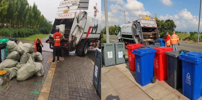 節(jié)日期間,環(huán)衛(wèi)分公司每天出2輛清運車輛,隨車4名環(huán)衛(wèi)推桶工人、2名駕駛員,對徐圩新區(qū)住宅小區(qū)、企業(yè)(單位)及公共地段60個垃圾收集點的440個垃圾分類桶、200個果皮箱及400個垃圾包進(jìn)行清收。每日清收垃圾約20余噸,并及時將垃圾轉(zhuǎn)運到垃圾中轉(zhuǎn)站。